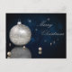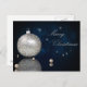 An elegant Christmas Illustration: a silver Christmas ball and white pearls on a dark blue bokeh background.
