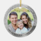 Elegant Silver Glitter Photo Metallic Christmas Ceramic Ornament