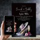 Invite your friends and family to attend your brunch and bubbly bridal shower with this elegant invitation featuring stylish silver high heel shoes and a glass of champagne. You can effortlessly add all the necessary details to the customizable text. Choose from various paper types and corner styles to make your invitations unique. Additionally, you have the option to download the invitation if you prefer a digital format.