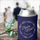 Elegant Silver Lace Navy Blue Bridesmaid Wedding Can Cooler