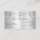 Make a lasting impression with this elegant and eye catching business card template featuring squiggled ornaments with sparkling diamonds on a shimmery silver background.
