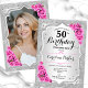 Elegant Silver Pink Photo 50th Birthday Invitation