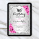 Elegant Silver Pink Photo 50th Birthday Invitation