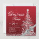 Elegant Silver Red Winter Christmas Tree Bow Invitation
