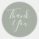 Elegant Silver Sage Signature Script Thank You Classic Round Sticker
