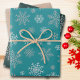 These three sheets of wrapping paper feature silver snowflakes on a background of teal, dark blue and dusty pink.