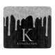 Elegant Black and Silver Sparkle Glitter Drips Monogram Cutting Board with fashion faux silver glitter dripping onto a chic black background with your custom monogram and name. Designed by Cedar and String. If you need assistance or matching items, please contact us at cedarandstring@gmail.com.