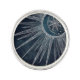 Elegant Silver Sun Moon Doodle Mandala Blue Design Lapel Pin