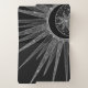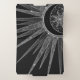 Pretty, whimsical silver gray sun and moon mandala design, featuring flowers and leaves doodles, stars, dots, diamond, circles, triangles shapes, chevron, mermaid scale, geometric pattern, made with a gray silver and white faux glitter shining sparkles texture, with a crescent stage glowing moon, a mandala flower star, on a dark blue nebula, galaxy stars, midnight blue color background. This beautiful, mystical, universe theme, cute sun, henna, mandala style artwork, original image print, fits perfectly for home decor, everyday wear, or special occasion theme decorations.