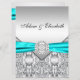Plain white envelopes are included with paper invitations and will come to fit the invitation size you select. If you don’t need the envelopes, you may choose to not receive them by selecting the dropdown below "Envelopes" and choosing "None." If you’d like to have a design on your envelopes, you can browse all of these available envelopes to find the design that complements your Elegant Silver Teal Blue Wedding Invitations.