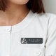Island chic nametag features your name and title or company in classic white lettering on a soft black background adorned a tropical hibiscus flower in faux silver foil. A beautiful choice for hairstylists, salon or spa employees, or anyone employed at an island or beach-based business.