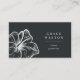 Ideal for island or beach-based businesses, these elegant business cards feature a tropical hibiscus flower in faux silver foil on a rich soft black background with two custom text fields in classic white lettering. Customize the back with your full contact details, with an additional hibiscus flower peeking out from the corner, and a customizable QR code.