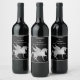 ELEGANT SILVER UNICORN BLACK CUSTOMIZABLE WINE LABEL