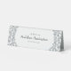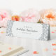 This silver damask place card makes an elegant silver wedding card for formal décor and is often used as decorative silver stationery. To create a sleek corporate style, the damask decoration can be removed, producing a modern plain silver card. Kept as-is, it is a classic silver wedding table card with timeless appeal.