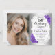 Elegant Silver White Purple Photo 50th Birthday Invitation