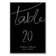 This elegant black and white wedding table number is perfect for a modern wedding. the simple design features elegant white calligraphy on a black background.