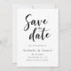 This elegant black-and-white wedding save-the-date card is perfect for a modern wedding. The simple design features elegant black calligraphy on a clean white background. The card also includes a QR code for the wedding website on the back.