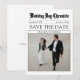 This flat card Save the Date, in the unique and beloved classic, vintage newspaper style will catch the attention of your guests. The elegant, old style calligraphy and simple, modern typography looks like a newspaper. It has a classic, regal, minimalist aesthetic and is almost entirely personalizable. Under the name of the newspaper are the wedding date and reminder that an invitation will be sent later. The front page headline reads, "Save the Date". Underneath it is one photograph and the caption is the first names of the groom and bride. You can include a QR code on the back side of the flat card if needed. Because it is minimalist, this design style is appropriate for a winter, spring, summer and fall wedding and depending on the customizable content, it can be formal, casual, sentimental, fun, funny or whatever you want it to be. This Save the Date can be sent by mail or as an instant download. See the Wedding Collection below for the beautiful options available to you. Congratulations from Home Together!