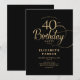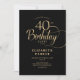 Elegant Simple Black Gold Script 40th Birthday Invitation