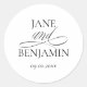 Elegant Simple Black & White Wedding Envelope Classic Round Sticker
