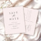 The Elegant Simple Blush Save The Date card is the perfect blend of modern sophistication and timeless charm. Designed with minimalist aesthetics, it features a soft blush pink background paired with elegant calligraphy script. This non-photo save the date offers a refined and understated announcement of your upcoming wedding or engagement. Ideal for couples seeking a modern yet classic style, it seamlessly combines elegance and simplicity, making it a versatile choice for any wedding theme.