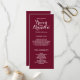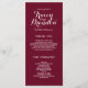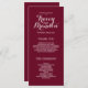 Elegant Wedding Programs. White text on burgundy background. Design by Elke Clarke © Available at www.zazzle.com/monogramgallery. Customize with your background color and all your personal information to create a simple yet sophisticated program which your ushers can hand out as your guests enter the church or are seated where the ceremony will take place. It helps people follow along during the ceremony but also acts as a keepsake for your guests. You can use the template fields to fill in the suggested information about your wedding party and order of service and thank you message or select "customize it" and use the edit menu to change the text spacing, fonts, colors as you wish to create your own wedding programs.