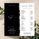 Minimal business pricing guide with calligraphy style fonts and black and white color scheme. This elegant monochromatic beauty bar price list includes space for your products or services pricing as well as your contact details and logo. This stylish pricing guide rack card design is perfect to use for your hair salon, spa, boutique or any other professional services.