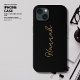 Create your own stylish, modern iPhone case and protect your phone in style! This case features a stylish handwritten style script font in gold tone on a black background. Select from slim or tough style of iPhone case.