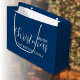 Elegant, simple, clean, Midnight Blue Christmas Gift Bag with white handwritten personalized stylish text.