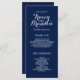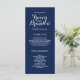 Elegant Wedding Programs. White text on navy blue background. Design by Elke Clarke © Available at www.zazzle.com/monogramgallery. Customize with your background color and all your personal information to create a simple yet sophisticated program which your ushers can hand out as your guests enter the church or are seated where the ceremony will take place. It helps people follow along during the ceremony but also acts as a keepsake for your guests. You can use the template fields to fill in the suggested information about your wedding party and order of service and thank you message or select "customize it" and use the edit menu to change the text spacing, fonts, colors as you wish to create your own wedding programs.