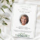 A beautiful and elegant funeral invitation adorned with simple elegant eucalyptus green leaves.