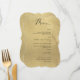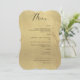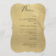 Elegant faux gold foil wedding or dinner reception Menu card. Contemporary, simple, and elegant 5" x 7" menu design with beautiful faux gold foil background print and modern handwritten calligraphy details. Available to choose from several corner options. The bracket style is simply an example. Text in black. Part of our "Black and Gold Monogram Wedding Collection" with a variety of coordinating products available. Visit the entire collection at: https://www.zazzle.com/collections/black_and_gold_monogram_wedding_collection-119092477004367833