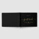 Elegant Simple Gold Script Wedding Black Guest Book Personalised. Wedding Guest Book in black and gold. Features modern „guest book” text in hand lettered swash tail font calligraphy, wedding date and couples first name with love heart motif/shape. Easy to customize with your information. It great for wedding or anniversary day.