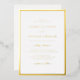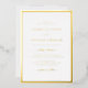 Simple and stylish, this formal wedding invitation features a classy border and elegant calligraphy script pressed in real gold foil.