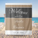 Elegant Simple Gray Beige Script Wedding Welcome Tapestry. Elegant and modern design in beige and dark gray colors. Trendy script in white - add bride`s, groom˙s names and wedding date.