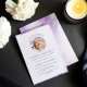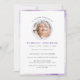Elegant Simple In Loving Memory Photo Funeral Invitation. A simple and elegant funeral or memorial invitation with photo, easy to personalize template with your picture and prefered wordings in soft watercolor purple.
