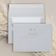 This design features an return address elegant envelope, perfect for weddings or any day. with elegant, basic, return address, and a simple, light blue, grey, and calligraphy script, with an ampersand, in a silver style