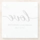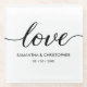 The design features the word 'Love' in an elegant script font, adding a touch of romance and sophistication. Personalize the coasters with the names of the newlyweds and the wedding date, making them unique to your celebration.