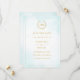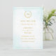 This elegant timeless classic wedding design combines classic laurel wreath enclosing Bride’s and Groom’s monograms and a light turquoise watercolor ombre. Gold lettering (gold is not real gold but color). Elegant font combo.