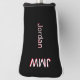 Color shadows elevate this simple-looking cover for golf clubs by adding red shadowing to the name and monogram initials. We have used white, shadowed by red, for your three-initial monogram, at the upper end of the cover, and your name (first or last your choice) perpendicular to the monogram. While we've selected white piping, play around with the various colors to choose your personal favorite. A simple, non-serif font has been selected for the text on this custom golf club head cover that can be fully personalized as you wish. It is a wonderful, personal gift for your loved ones who enjoy golfing as a sport.