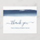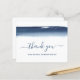 Creative and unique budget business thank you card featuring a simple design with an artistic navy blue watercolor brushstroke across the top along with the words, "thank you" in a handwritten script with swashes over a white background. The backside has your personal message. This modern and professional design is great for any type of business.