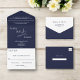 Elegant Simple Navy Blue White Calligraphy Wedding All In One Invitation