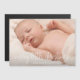 Announce the birth of your new baby boy or girl with this modern photo announcement magnet featuring the message, "Merry Little Christmas" in an elegant thin white script along with baby's name and birth date over your favorite horizontal photo.