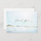 A simple, elegant, modern script wedding thank you card featuring a painted watercolor background of a wild beach coastal landscape in aqua teal. A classy choice for a beach wedding, destination wedding or beach elopement wedding.