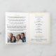 The front features an oval shaped portrait photo, while the inside includes space for the obituary, order of service, and a family photo. The back offers a customizable section for a poem, prayer, or acknowledgment.