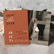 The matter paper is our sample of choice -- it's a reasonably priced, good quality, nice feeling paper stock. We were a little concerned the muted rustic blues might not reproduce all that well (usually by light colored samples), but they're just gorgeous! The white lettering is perfect in combination with the blue background, and the typography is all easy to read.