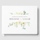 Ask your loved ones and guests to sign their personal well-wishes and sentiments of love with this simple, chic and elegant custom wedding guest book, a budget friendly alternative featuring a beautiful arrangement of watercolor white flowers and green foliage on a subtle, fully customizable background. Explore this collection and find matching items in our shop!