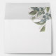 This design features an elegant wedding return address floral, blue simple watercolor greenery foliage, trendy stylish boho minimalist, simple and minimalist stylish trendy, eucalyptus green botanical leaves, return address printed back flap, classic traditional hand-drawn artwork,5x7 envelope a7 size, custom wedding envelopes, custom customized personalized