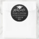Elegant simple white script Calligraphy On Black Classic Round Sticker