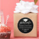 Elegant, whimsical custom white typography -Graduate- with a grad hat over black background.